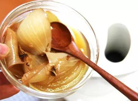 洋葱去皮切开泡红酒,放在冰箱冷藏一周,饮用吃葱,对痛风也很有帮助。