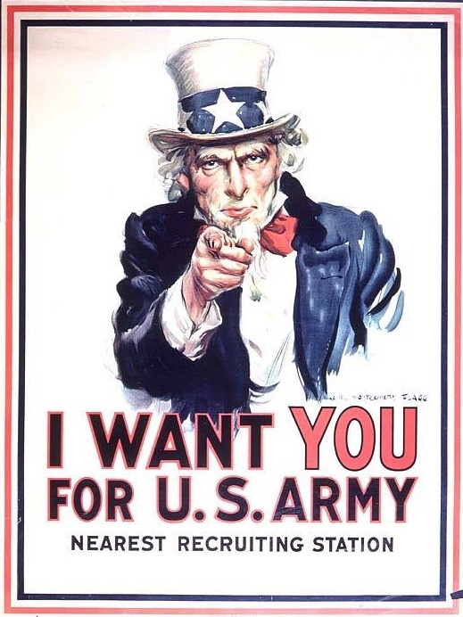 这张是英国的征兵海报,与美国的海报有相同的思路,但是少了很多创意,看了之后只感到山寨气息。