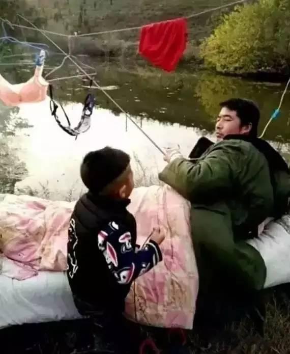 冬天外面的气温确实很低,尤其是河边温度比正常温度还要略低,而且地方比较潮湿,这位钓鱼人直接把孩子老婆都接来河边,直接在把床安札在河边,这样免得钓鱼受冷,从内心里佩服这位钓鱼人!