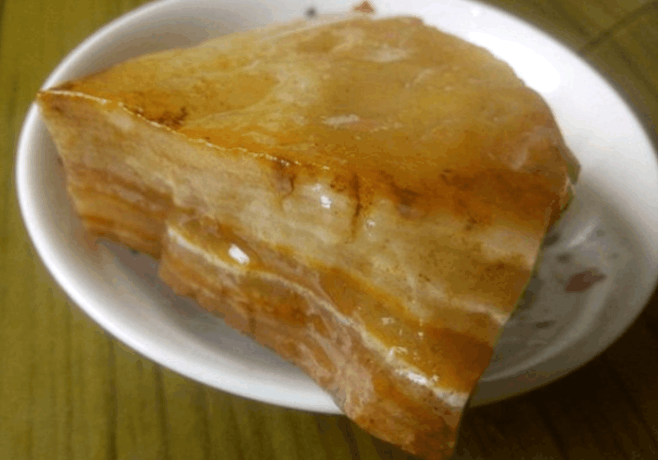 肉石,是一种天然石种,因外观长得像肉块,而因此得名的。它的色泽纹理全是天然形成的,而且肉层分离显得更加形象。图为,一块形如五花肉的肉石。