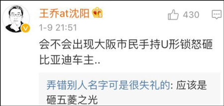 比如手持U形锁怒砸五菱之光!