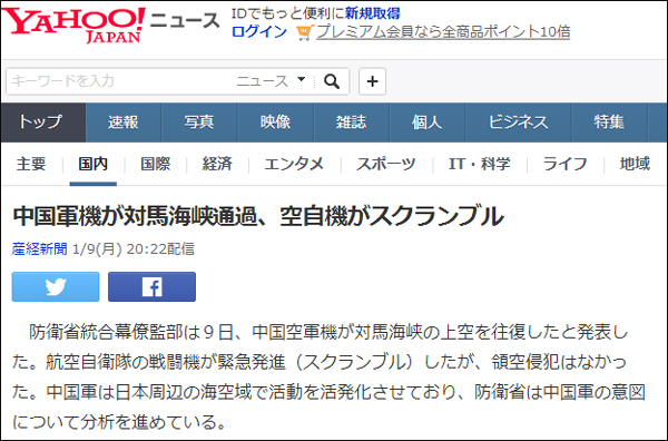 日本最大的门户网站雅虎日本,刊登了日本产经新闻关于此事的报道,报道称中国军机并没有侵犯日本领空,日本防卫省正在分析中国军机的目的。
