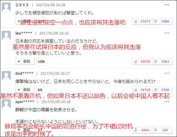 新闻底下的热门评论,都是一副“无辜的日本被中国欺负了”的白莲花形象:我们不应该助长“中国的霸道行径”,要把飞机击落,不然会被中国人看不起!