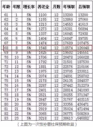 这种一次性补缴划不划算?问理财君归纳各方数据对比发现,68岁摆布的时分,能够把养老金赚回来。详细的数据详见表格: