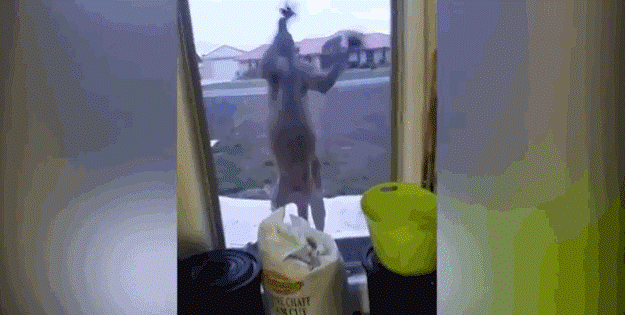 近日澳大利亚一名女子独自在家时,有一只棕色袋鼠前来“拜访”,她忍住内心的恐惧录下这段罕见的画面。画面中,袋鼠用强壮的后腿高高站立在窗前,盯着屋里的人并且持续敲打玻璃。