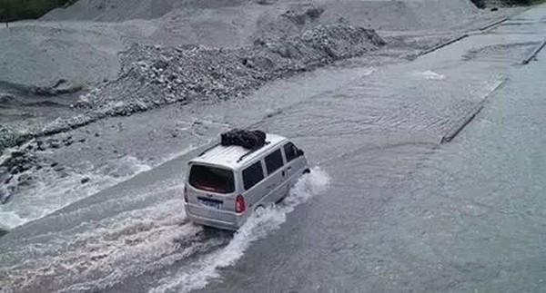 艾玛,怎么面目全非了?原来好好的越野车跑进帕隆藏布江洗澡了,而且车头朝下。这下该报废了吧?