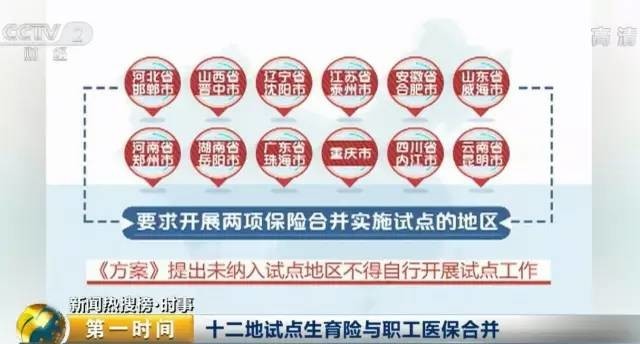 国务院办公厅日前发布《生育保险和职工基本医疗保险合并实施试点方案》,《方案》要求,今年6月底前在12地启动生育保险和职工基本医疗保险合并试点,试点期一年左右。